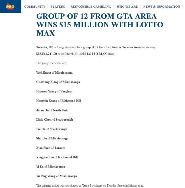 据透露,这12名中奖者都是华人,其中5人来自密西沙加,2人来自列治文山,2人来自士嘉堡,1人来自多伦多,1人来自北约克,1人来自旺市。