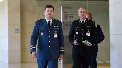 Pierre St-Amand中将正走进议会(Sean Kilpatrick/Canadian Press)