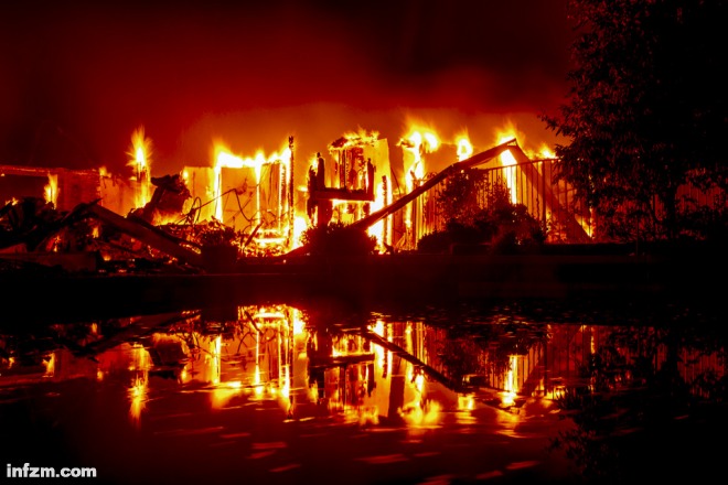 7月27日,在美国加利福尼亚州雷丁市,一座房屋在燃烧。(新华社/法新/图)