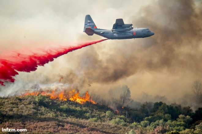 8月5日,在美国加利福尼亚州克利尔莱克奥克斯,飞机在火场灭火。(新华社/美联/图)