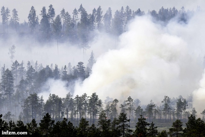 7月15日,山火在瑞典于斯达尔附近蔓延。(新华社/路透/图)