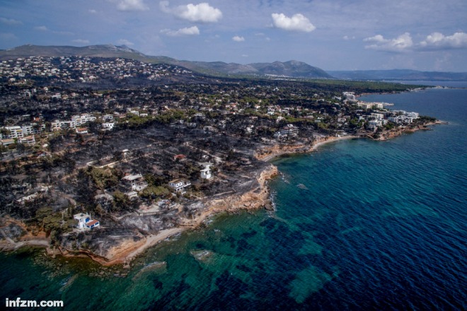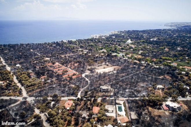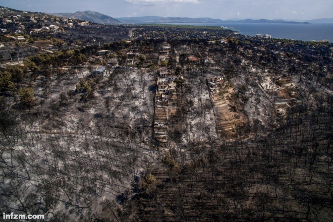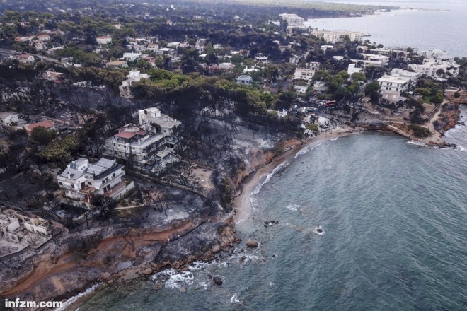 这是7月25日在希腊雅典附近的马蒂村拍摄的被山火烧过的村庄。(新华社/美联/图)