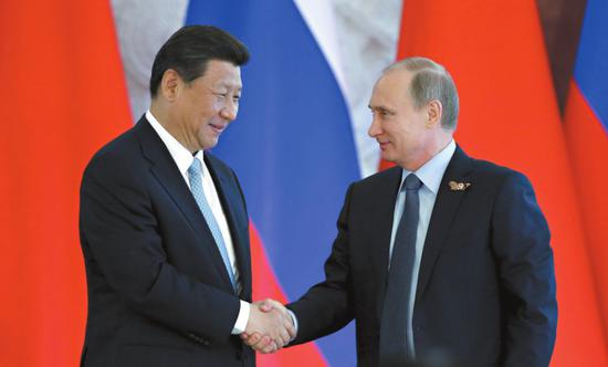 中国受到美国贸易战威胁,俄罗斯受到美国制裁和打压,两国自然而然会站在一起,共同面对美方压力。