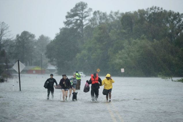 在北卡Jacksonville市,救援人员从一家倒塌的汽车旅馆中救出60多人。随着水位不断上涨,其他地方的人也在等待救援。