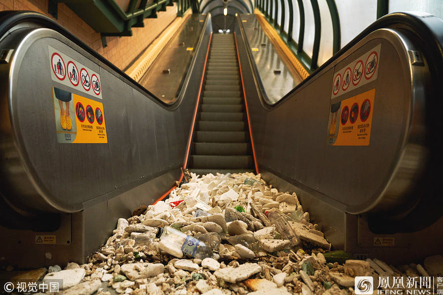 9月19日报道,近日,台风“山竹”重创香港,沿海的杏花邨遭海水涌入,淹没街道。积水退去后,街道上留下了满满的泡沫塑料、饮料瓶。图为台风过后的香港杏花新城,商场一层被倒灌的海水淹没,大量垃圾被冲入商场,堆在扶梯口。来源:财新网梁莹菲/视觉中国