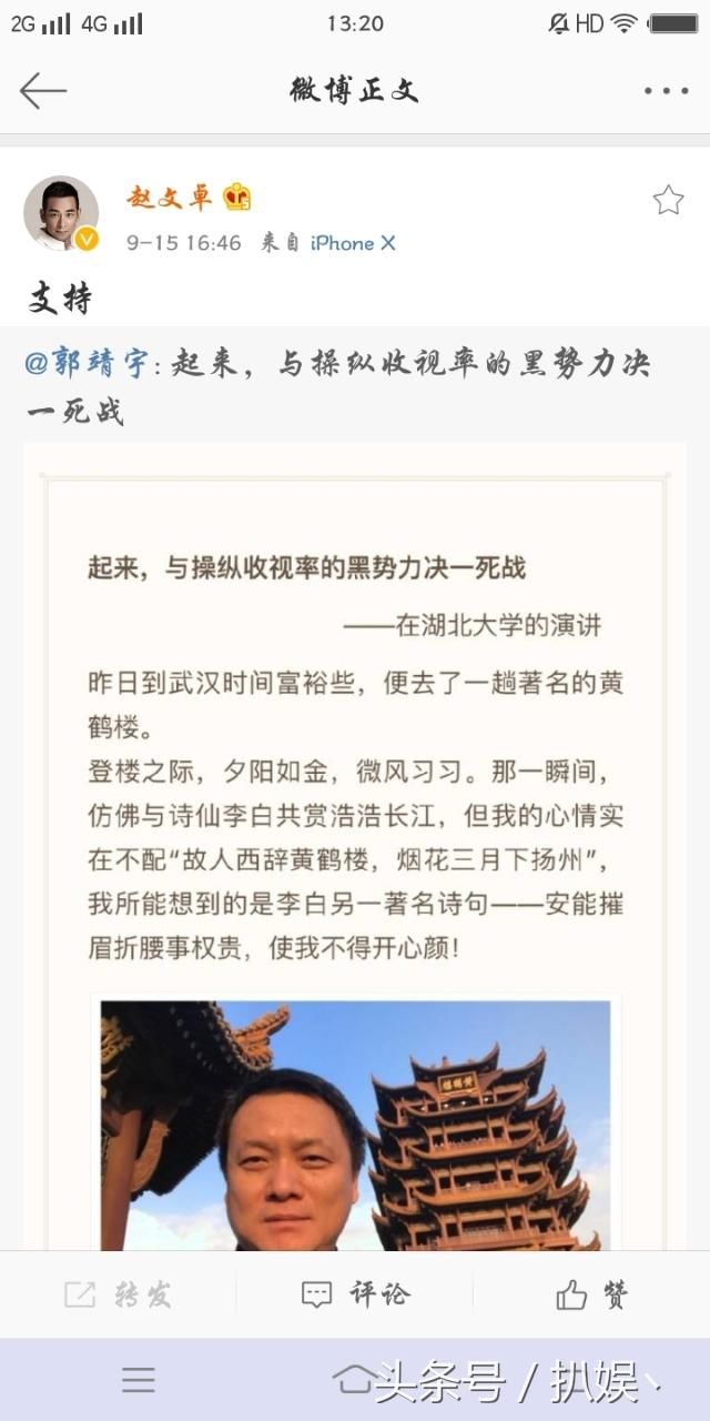 随后,赵文卓转发了长文,力表支持。