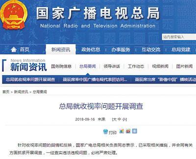 国家广播电视总局9月16日发布《总局就收视率问题开展调查》称,针对收视率问题的與情和反映,国家广电总局相关负责同志表示,已采取相关措施,并会同有关方面抓紧开展调查,一经查实违法违规问题,必将严肃处理。