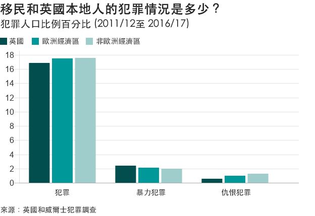 与英国出生的人相比,新成员国公民更易受到警告或定罪,但在移民工人中,年轻男子的比例也更加大,任何背景的年轻男子都是最有可能犯罪的人群。