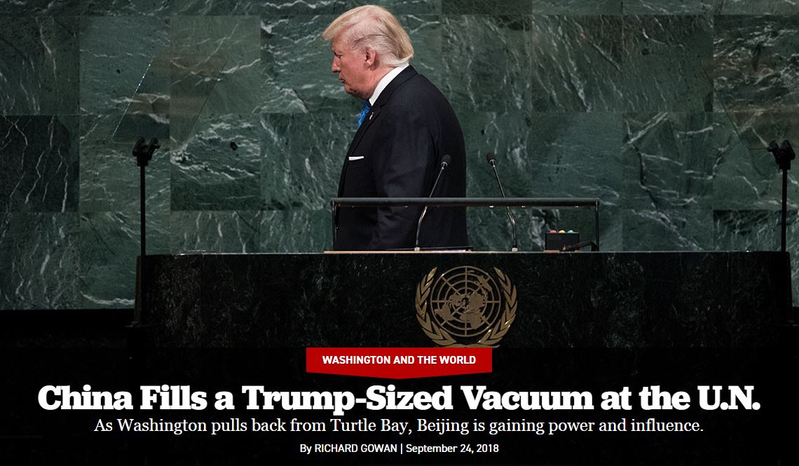 更有美媒报道称,特朗普在联合国上留下的空位,正在被中国填补。