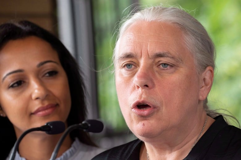 魁北克团结党 Quebec Solidaire 女议员卢芭·加扎尔(左)与党发言人码农·马赛(右)/??(Paul Chiasson/The Canadian Press)