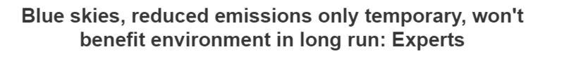 因此,现在人们能够看到蓝天和相对清新的空气。然而,这都是暂时的,它不会对环境造成长远的影响。”