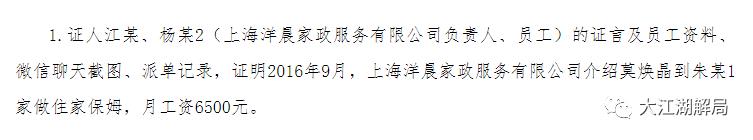 文中的朱某1,就是受害的女主人朱小贞。在《局面》的一期节目中,王志安采访了莫焕晶的代理律师,代理律师说:2016年9月8日,莫焕晶当时刚好在一家家政公司登记,然后他刚好登记好以后,朱小贞就打了电话,问家政公司有没有阿姨。