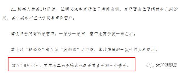四名受害人都被救出,并送到了医院。怎么可能尸体还会在小区里,林生斌怎么可能让他们留在家里。林生斌从广州赶回杭州之后,在浙二医院确认死者是其妻子和孩子。