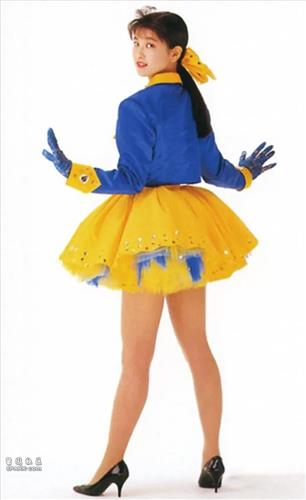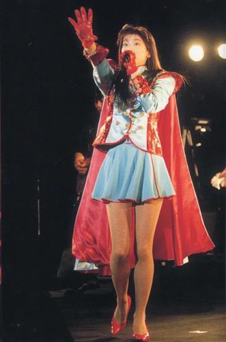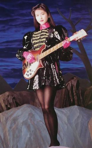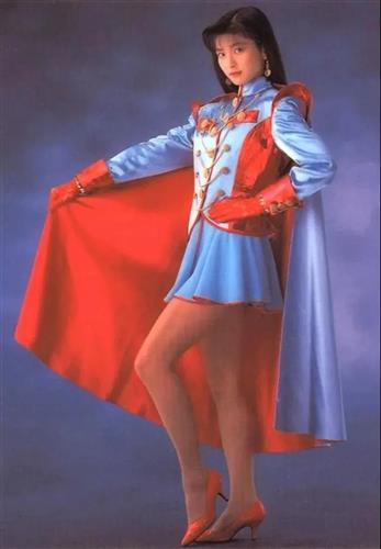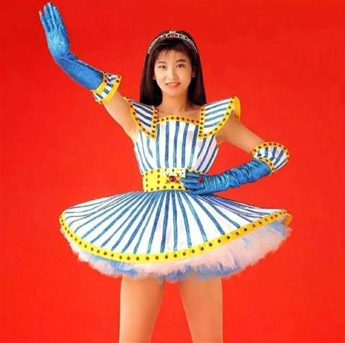 刚开始走红的森高千里,穿着cosplay式的华丽服装,像动漫人物或人偶一样美丽,引人注目。