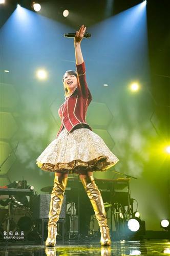 而舞台的她穿上可爱的迷你裙,摇身一变!依旧充满活力,少女感十足。仿佛又看到了二十年前那个俏皮活泼的偶像歌手。