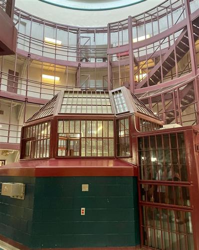 建筑之旅(The Architectural Tour)侧重于建筑的历史及其建筑意义,你可以了解建筑背后的设计理念。例如这里有一个独特的拱形前门和十字形牢房,这种设计可见于其他加拿大监狱中。你也将会参观食堂和西塔,而这两个景点都不包括在标准导赏团中。