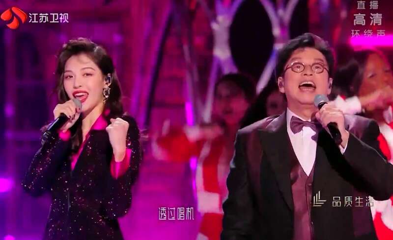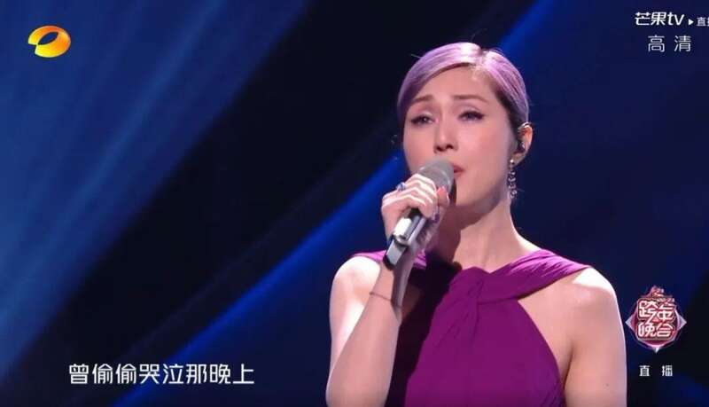 43岁的陈贝儿,是唯一出现在跨年晚会的TVB艺人,挺难得的。老牌巨星谭咏麟,上场唱了三首歌,先是跟钟楚曦、单依纯、张纯烨三位女明星合唱《狮子山下》,接着分别跟单依纯和钟楚曦唱了自己的两首经典《一生中最爱》和《卡拉永远OK》。
