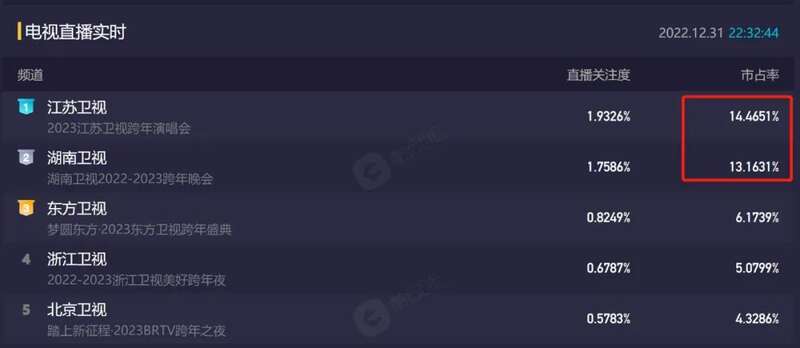 邓紫棋上场后,江苏卫视的收视市占率大幅提升,一度超过了湖南卫视。