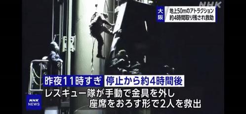 工作人员试图在地面排除故障,但用尽了所有方法都没有成功,继而在事发将近两小时后才向消防部门求助。消防人员抵达现场,由于消防车的云梯只能达到42米高度,无法直接提供救助。之后,消防员只好爬到座位上方,手动排除故障。
