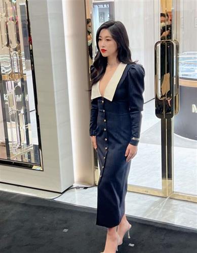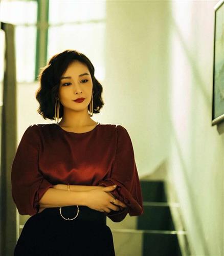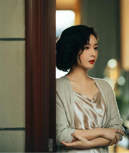 蓬松的大波浪凸显出殷桃的美人尖,身穿吊带裙颇有半老徐娘的韵味,既有成熟女人的魅力,又有少女的娇羞感。