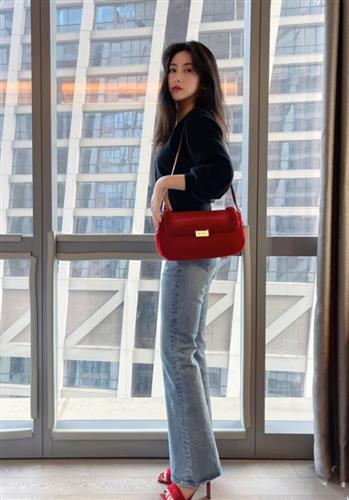 橘红色职业装搭配烈焰红穿,这么出挑的色系碰撞却被朱珠驾驭得很好,果然身材好,走到哪儿都是行走的“衣架”。