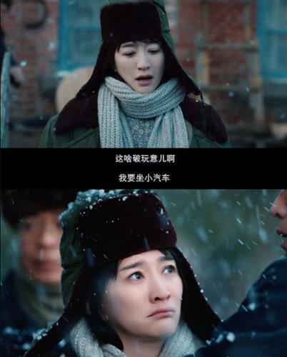 穿着绿色军大衣,戴着属于八十年代的围巾、帽子,临到生产前还和丈夫撒泼,李小冉饰演的刘淑霞知性中又不失一丝少女的可爱。