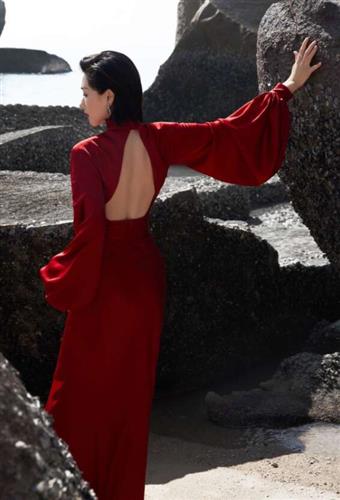 其实,刘敏涛出席各大红毯时更多是以亮颜色的礼服为主。比如这条红色高开叉长裙,美背、长腿一览无遗,尤其是大腿位置开叉的设计,可以说是非常大胆了。