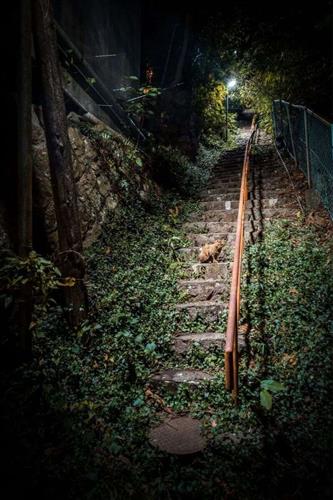 然而,这破败的景象并非噱头,也不是什么“阴间”审美。实际上这位摄影师就好这口!他会在全日本搜罗类似的景观,而且一幅比一幅有冲击性。这一天,他跟踪猫咪来到通往异世界的入口: