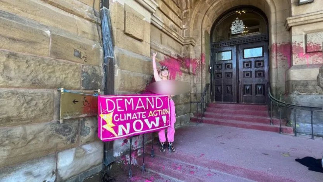 就在今天上午,一群环境活动家门来到渥太华,在加拿大总理办公室门口泼上了粉色油漆。泼油漆的女子在视频里看起来十分兴奋还很激情。更离谱的是,其中一名女子把自己锁在总理办公室门口,并且赤裸上身!根据现场的图片来看,这名女子上身完全赤裸,并且还拉出了一条横幅上面写道,“要求现在采取气候行动!”
