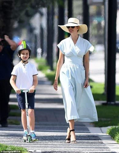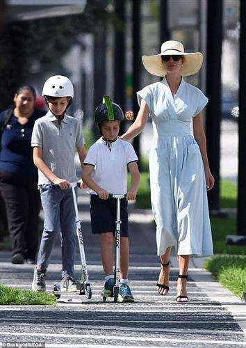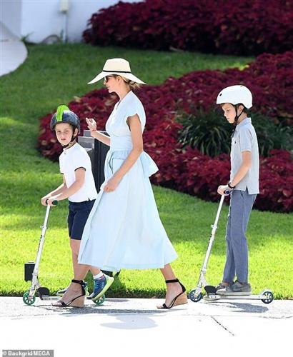 穿着淡淡的冰蓝色连衣裙的伊万卡,对儿子展现出了慈爱的一面,用手轻触7岁大的小儿子西奥多,脸上绽放出了笑容。身后跟随的是9岁的大儿子约瑟夫,只是她的最大的孩子,11岁的阿拉贝拉当天没有出现。虽然伊万卡因为在去年压力过大(母亲突然离世,丈夫癌症复发),暴瘦过,但现在似乎有所恢复了,却也更为曼妙了,尤其是从侧影看,她那颇有知名度的挺拔身姿,依然如故。