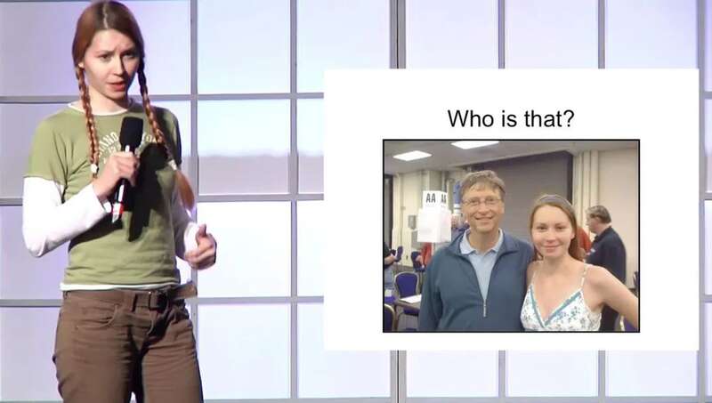 目前,盖茨和安东诺瓦的一张合影出现在2010年的YouTube视频中,她在视频中介绍了纸牌游戏,并谈到了在比赛中与这位亿万富翁的相遇。她在视频中说:"我没有打败他,但我试图用我的腿踢他。"据华尔街日报报道,这段婚外情大约也发生在2010年,当时盖茨与他的前妻梅琳达还在婚姻里。