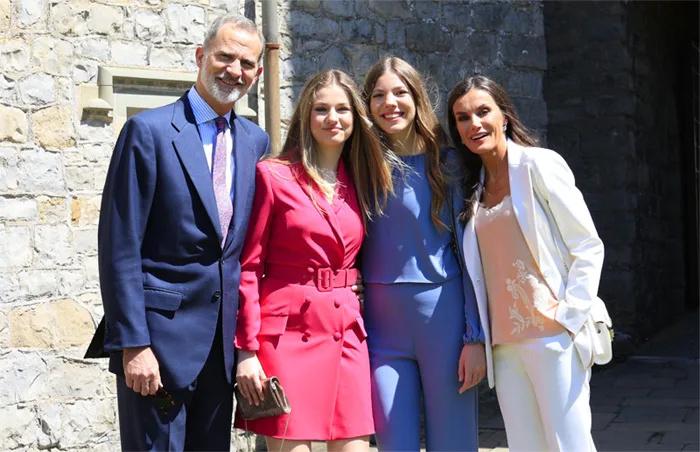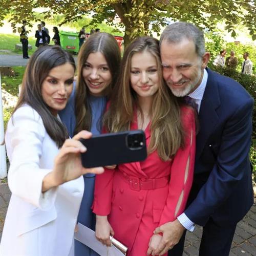 一家人的同框自拍!费利佩和拥有着一头浓密金发的女儿头挨着头,开心得真是溢于言表。费利佩对大女儿的偏爱,早在多年前就表露无疑了,为此也遭到过质疑,评论认为这对小女儿索菲亚太不公平了。但其实他可能只是更重视大女儿一些而已,毕竟这是未来的女王,需要更多地栽培。