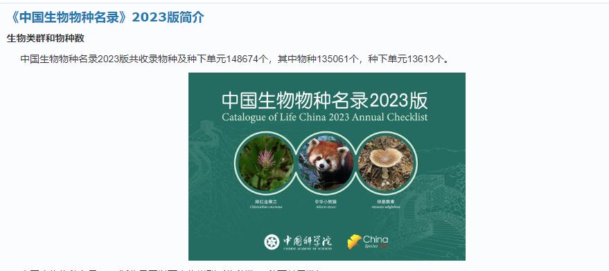 5月22日“国际生物多样性日”当天,中科院生物多样性委员会在线发布了《中国生物物种名录》2023版。据“物种2000中国节点”官网介绍,较2022版,2023版名录新增10027个物种和354个种下单元。