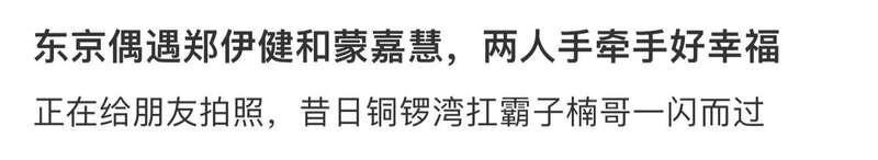 据爆料的网友透露,他是在日本东京偶遇郑伊健夫妇的。曝光的照片中,郑伊健穿着一身黑衣,身上还背着两个大包,而他的老婆蒙嘉慧也打扮简约,同样背着一个双肩包,夫妻俩走在路上朴素得好似路人。令人感叹的是,结婚10年,郑伊健和蒙嘉慧仍然像热恋中的小情侣,走到哪都十指紧扣,看起来特别甜蜜。