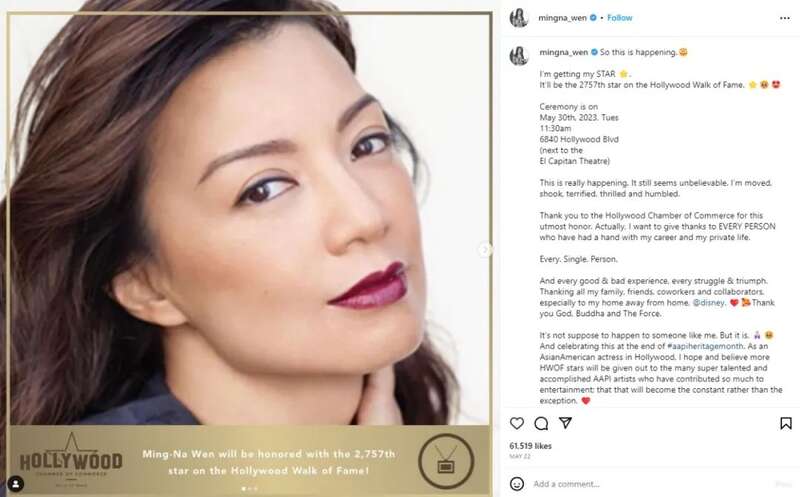 5月30日,好莱坞星光大道上再添一颗新的星星,美国华裔女星温明娜在好莱坞星光大道上获得个人专属星印,成为第2757位在星光大道留名的人。