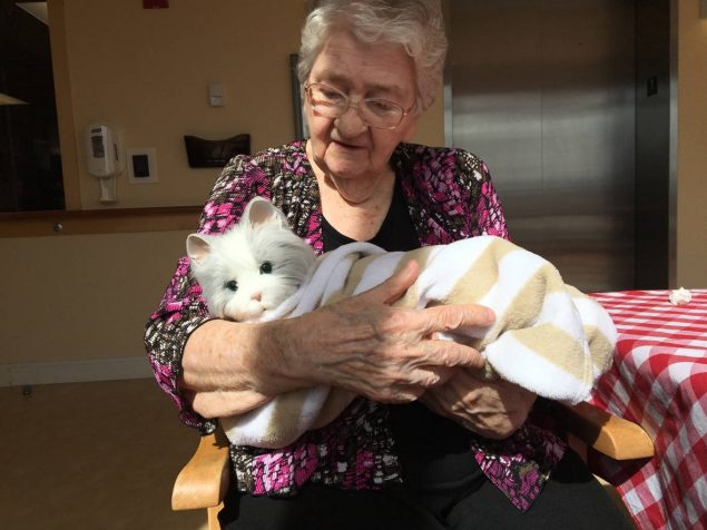 萨摩赛德地区的一家老人院有一个配楼,里面住的都是一些患有精神疾患的老年人。从今年1月份起,职业治疗师塔尼亚·麦克奎恩(Tania McQueen)带来了两只机器人宠物猫,希望它们能够陪伴有精神疾患的老人,逗他们开心,从而缓解精神疾病。