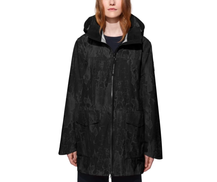 这是大鹅首次在产品上使用反光技术,据加拿大鹅官方表示,“反光桦树皮”的灵感即来自于BC省常年的阴雨天气与随处可见的桦树林。如同官网上描绘的,雨衣设计师希望反光效果可以为印花注入活力。