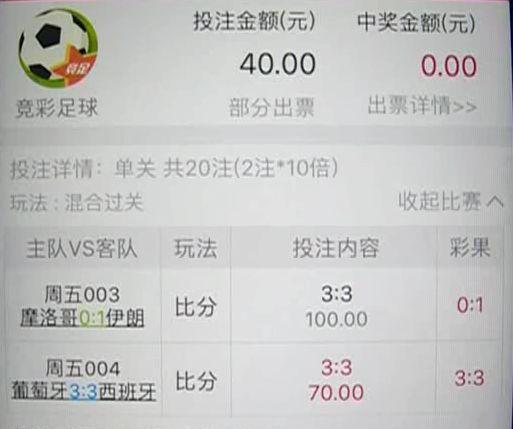 葡萄牙对西班牙的一场比赛 他竟然猜中了3:3的赛果 而且赔率高达70倍!!![]()