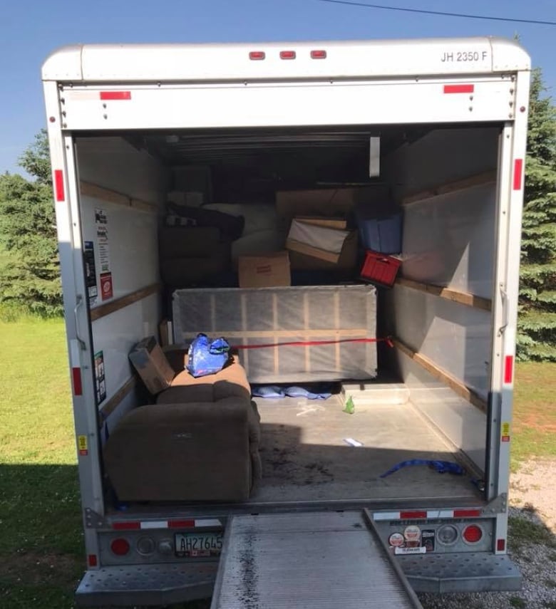 维姬和丈夫搬家的货物装了这样一卡车(Victoria Burton/Facebook)