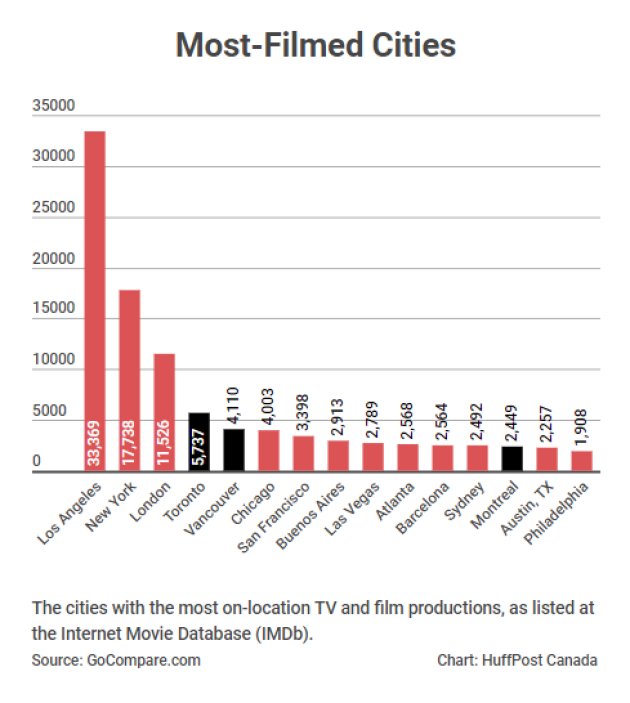 据Huffpost。几十年来,加拿大城市一直被作为美国电影和电视制作的取景地。现在这一点似乎得到了意想不到的文化回报:加拿大最大的几个城市在世界上被拍摄最多的城市榜单中名列前茅。
