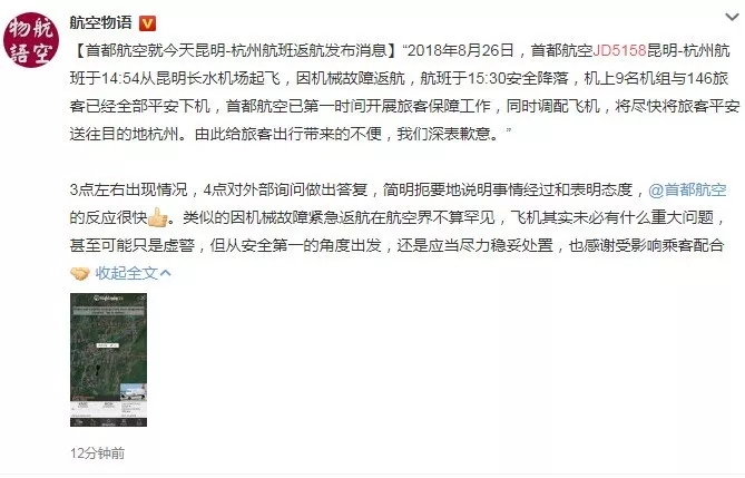 首都航空北京总部公关负责人董小姐表示:“航班于15:30安全降落,机上9名机组与146旅客已经全部平安下机。目前调查事故原因是机械故障导致机舱高空失压,飞机正在检修中。