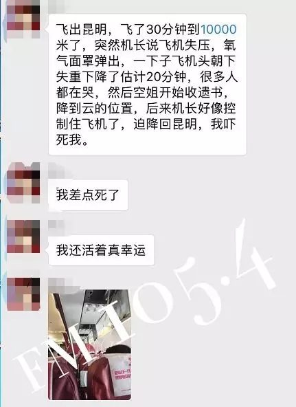 张先生回忆:当时老婆眼里全是泪水看向我,我当时心里就在想“我才三十几岁我不想就这么死了!就算我出事,别让我儿子出事啊!”坐在附近的一位乘客说,自己坐了三十多年的飞机第一次遇到这样的情况,还有人害怕自己不能活着下飞机,拿出手机来录遗言。这时有空姐制止,让大家关闭手机保持冷静。