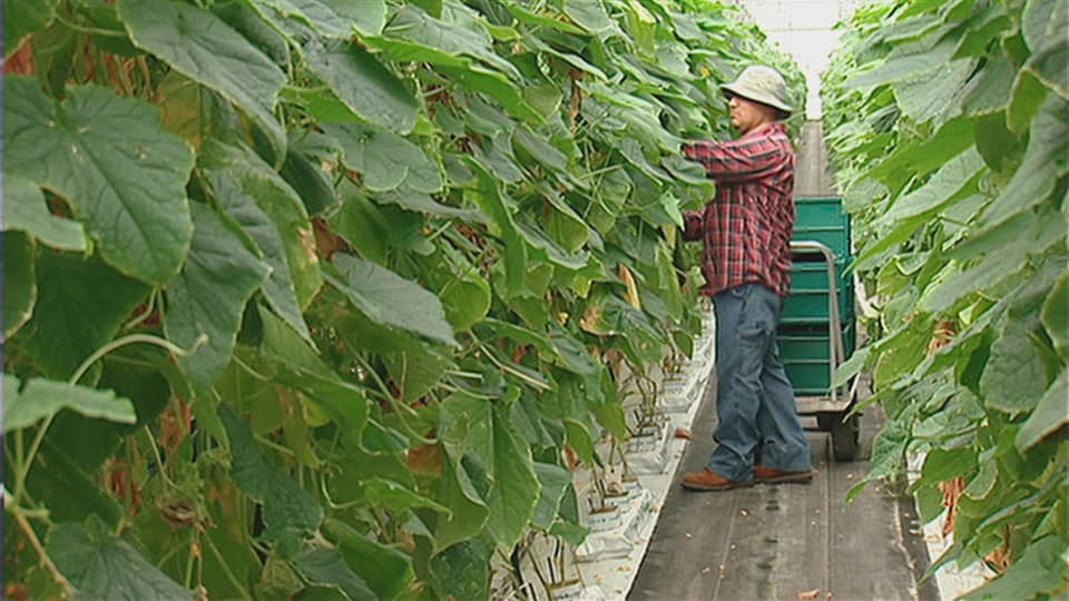 在安省的一个种植黄瓜、青椒和西红柿的菜蔬温室里,农场主 Greg Debris 说,他的农工中有三分之二来自外国,他说,这些外国劳工对我们来说非常重要,他们为我们社区的发展作出了重要贡献。