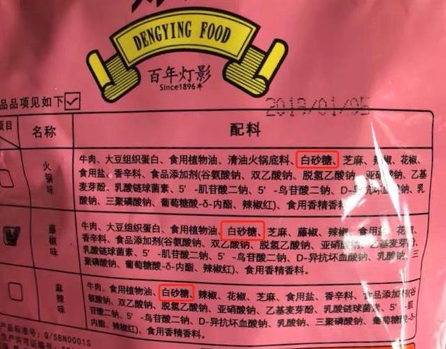 配料表按所加成分占比排布,灯影牛肉丝的白砂糖含量远超其辣椒和花椒的占比,甜辣,甜在前辣在后绝非虚名。
