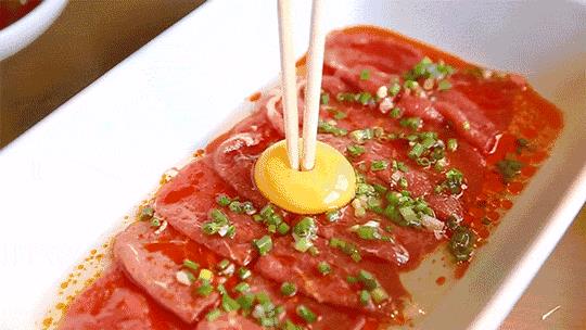 肉类中富含蛋白质,搀上锅底中的盐和糖,在油碟里打个滚,裹满油脂……一口下去,就是千金不换的享受。
