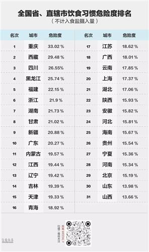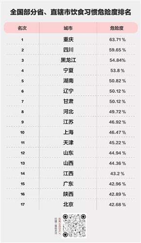 其余进入前五的省有宁夏、湖南、西藏、福建,或因高油,或因高糖也都进入了危险的前五之列。