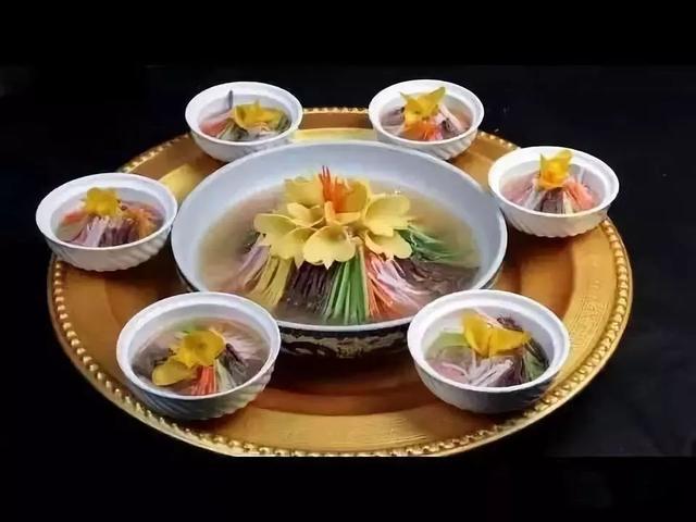 洛阳水席起源于唐代,全席24道菜,有八道冷下酒菜,四道大菜、八道中菜、四道压桌菜。牡丹燕菜是铁定会出场的角色,成品如一朵洁白如玉、色泽夺目的牡丹花,浮于汤面之上
