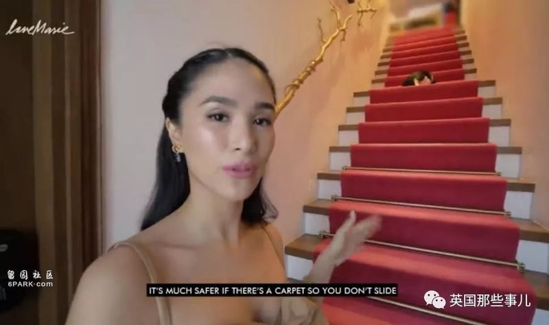 楼梯台阶上铺有红地毯,按照Evanglista所说,这是她特意安排的。