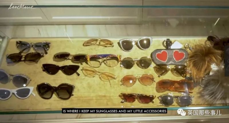 但摆出来的只是她墨镜的一部分,在衣柜下的抽屉里,还有很多收起来的墨镜。
