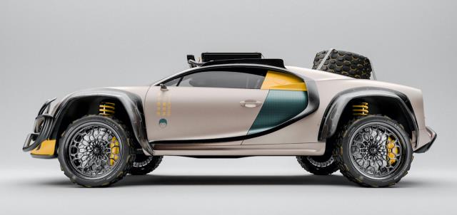 据创作者介绍,这是一台渲染出来的布加迪SUV,而且并不是全新的车型,因为它是在chiron的基础上绘制出来的,是一台具有越野功能的四驱SUV。可以明显看到,这台车的造型拥有布加迪的风格,同时又具备了更高的离地间距,融合了超跑的设计感,并且具备越野车的气息。特别是这高挑的前后悬挂以及全地形轮胎,让人可以放心地开着它去野外游玩。